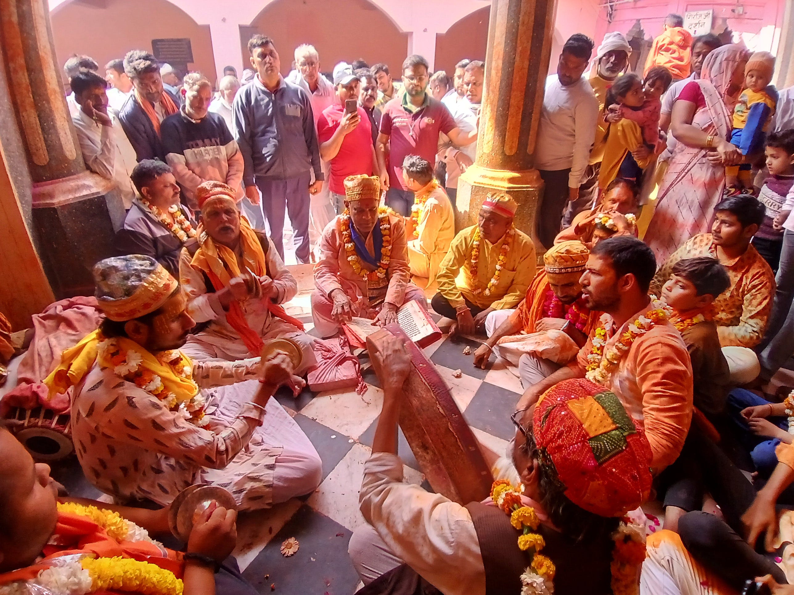 [Holi in Braj, 2025. A musical performance at a noted temple.]
