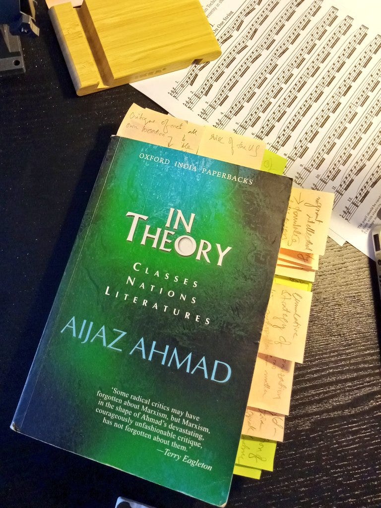Let me explain how I see Ahmad’s Marxism. He refuses to reduce literature or culture as symptomatic of material, worldly conditions of a people. Moreover, he refuses to see national elites as spokespersons of the material, affective or political milieux of nation-states in the Third World. This is where his hard-hitting class analysis lies. Ahmad calls out people who translate their non-western origins as social capital to gain entry into halls of privilege in the West, including western universities, often making exaggerated (even falalcious) representations about the nature of life and aspirational horizons of large numbers from the regions and nations they come from. The West wrongly interpellates their ‘difference’ as representative of their national/regional condition that their biographies originate in. So one (myself included) becomes a South Asianist scholar, or an Africanist literary theorist or some such. This neat representative infrastructure generates a grade of elite opportunism within the West and located in the Third World. It permeates deeply into diversity politics as practised in the liberal environs of the western university and beyond. The other important strand of Ahmad’s Literary Marxism lies in his steadfast refusal to see the individual fictional work as representative of the ‘tale of the tribe’ (to use his own words). Literature has a curious representative function of the society and time from which it grows, but it manages to accomplish much beyond acting a socio-cultural biography. Neither Dickens’ nor Joyce’s works would ever be read as a state-of-England or state-of-Ireland novels. There is no reason why Indian or Ghanaian or Indonesian ones should be read thus. In light of these early notes, go check out our podcast The Big Book Project.