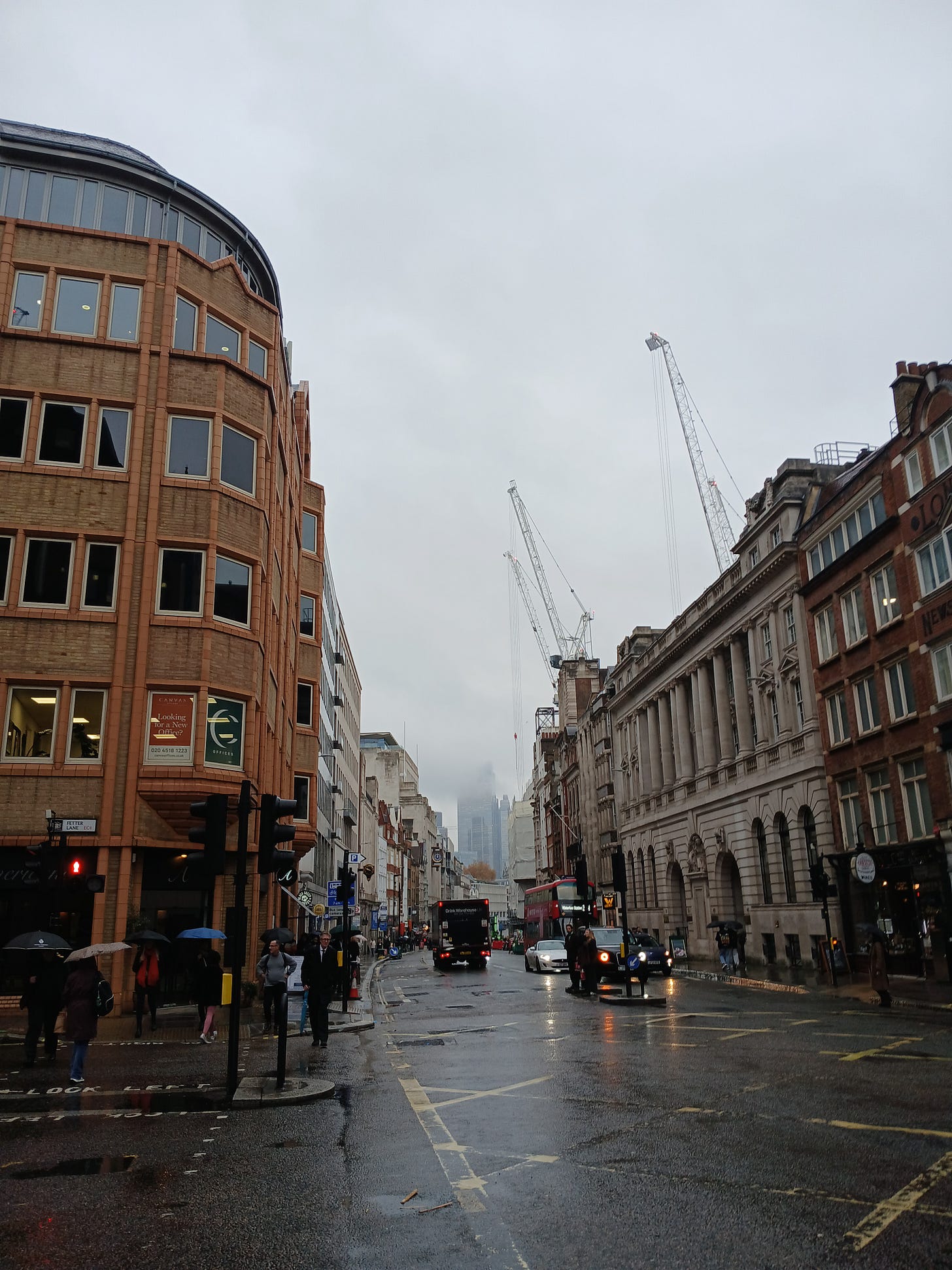 In this wet city, mist, cloud and cigarette smoke spell out a light melancholia. Its sadness is not hidden. It does not pretend to be happy. In the midst of consistently light rain, people carry big, cumbersome umbrellas. They wear odd colours - a lot of black and moss green. Big, ugly shoes. The average Londoner is not fashionable in the way we might think New Yorkers are. But there is an autonomy to those ugly shoes. There is an autonomy to this city. There is a fierceness in the rain and the umbrellas urban routine that the triumphalism of American cities like New York and Chicago cannot match.