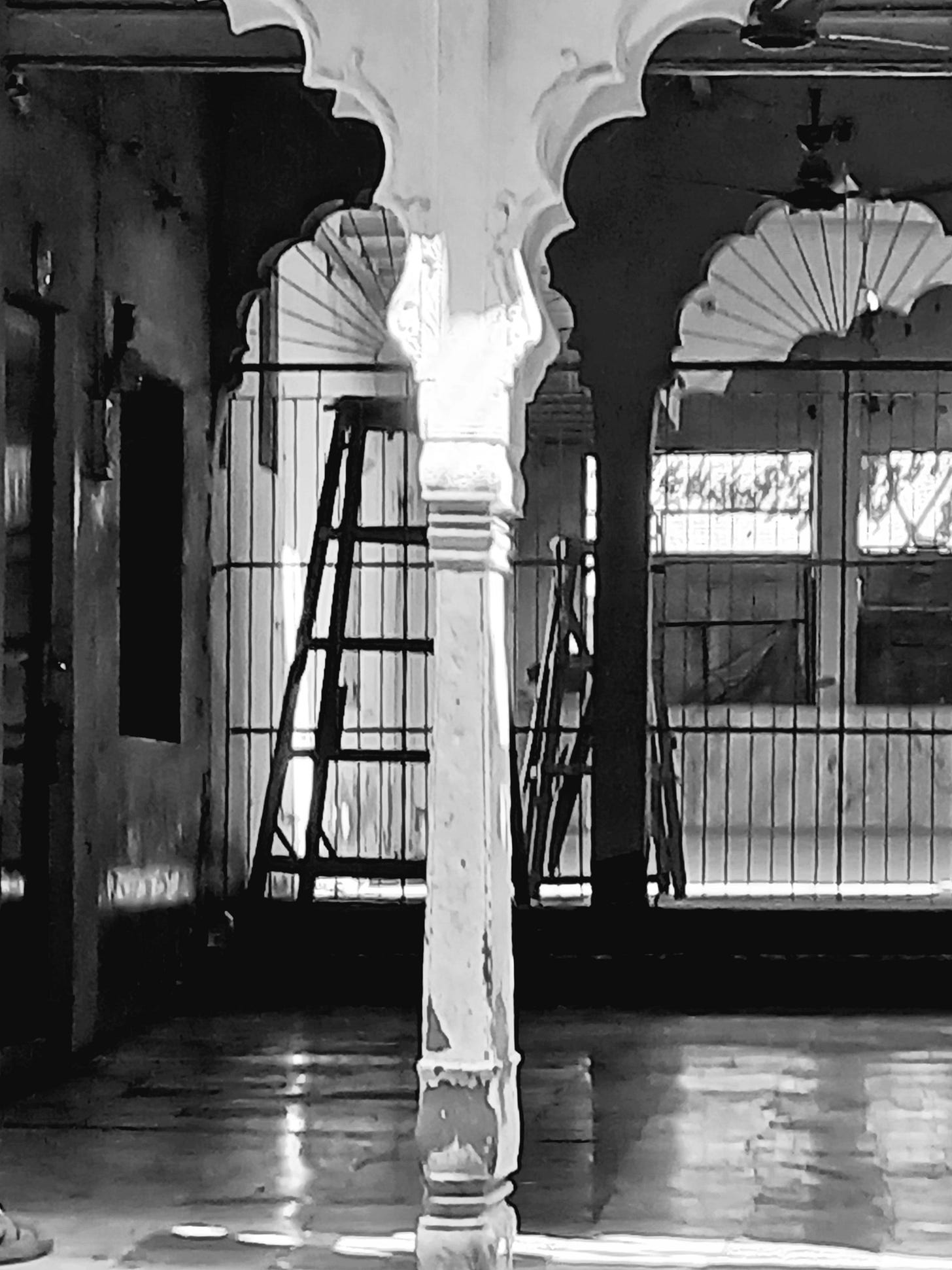 In the courtyards of Vrindavan, especially on hot afternoons, shadows come down to talk to each other. They mill about, feeling somewhat secure, comfortable. The harsh afternoon trickles through the cracks of windows and heavily carved wooden doors. The precarious baazaar of shadows inaugurates itself as the world around them goes to rest briefly.